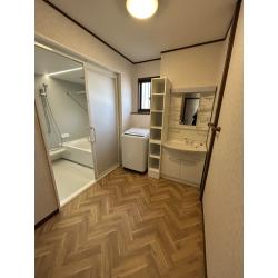 床材にはアクセントにヘリンボーン柄をご提案させていただきました。ガラッと印象が変わった洗面室になり、お客様もとても喜んでいました。