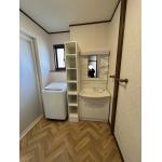 収納が少ないため、洗濯機と洗面化粧台の間に収納棚を作ってほしい。洗面化粧台交換のほかにクッションフロア、クロスも張り替えてほしい。