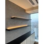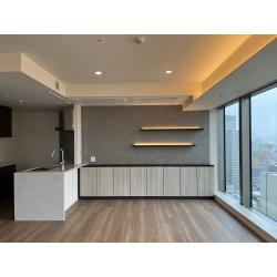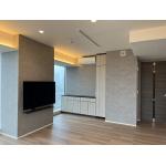 不足している収納スペースを増設し、間接照明やアクセントクロスでよりグレード感をアップ。高層マンションのリビングはホテルの一室のようなイメージです。