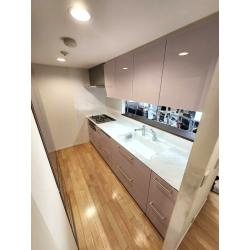ピンクとムラサキがかった扉の色がとてもキレイ! 明るくなりました。 キッチンに立つのが楽しみです。 職人さんがとても気を遣いながら作業してくれ好印象でした。