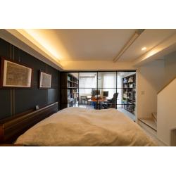 メゾネット上階のフルリフォームに続き、今回は下階部分をご依頼いただきました。工事中はネコちゃんが階段から下りないよう厳重に囲いをして、できるだけストレスがかからないように配慮しています。玄関はクロスのブルーを美しく見せるため照明にもこだわられ、ダウンライトは昼光色にしました。2回目とあって、おふたりも好みのインテリアを追求され、さらに心地よい空間になっています。
