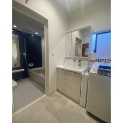 白を基調とした、現代っぽいシンプルな洗面・浴室に。