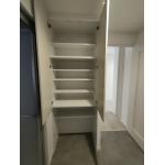 間取りを工夫して洗面所を広げ、洗面台の横に洗濯機置き場を設け、パントリーも設置。ストック品や掃除道具もすっきり収まり、空間に余裕と心地よさが生まれました。