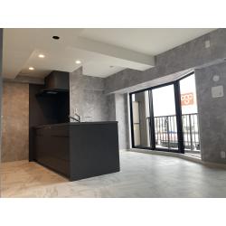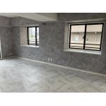 和室とリビングを一体化し、白×グレーを基調に、大理石調フローリング・塩ビタイルを採用。スタイリッシュでホテルライクな仕上がりに。