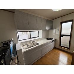 水栓のみの交換と収納を充実させたいとのご依頼でした。 現場調査の際にキッチンの交換の御見積、カップボードのみ、部品のみの交換など複数ご提案させていただきました。 費用面や今後故障してくるおそれがある面、お子様の独立で収納が減らせる等のアドバイスをさせていただき最終的にキッチン丸ごと交換とのご希望になりました。