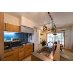 施工前のキッチンは半独立型で暗く、またダイニング側もテーブルを置くだけで空間に余裕のない状態でした。 そこで囲い壁を撤去し、キッチンの配置を一から検討、2列型のキッチンをご提案しました。 2列型を採用する際に課題となったのがレンジフードの位置でしたが、梁下にも取り付け可能なタイプを見つけたことで、見た目にもバランスの取れた納まりを実現。 また、キッチンが家具のように空間全体に溶け込むよう、ウッドワンの無垢の木のキッチンを採用しました。シンク下をオープンにでき、ゴミ箱をすっきり収納できる点も決め手のひとつです。 視界を妨げる懸念があったパイプスペースは、キッチンとの距離を人が通れるほど確保することで回遊性を生み、違和感なく空間に馴染ませました。
