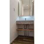 洗面化粧台取り替え、床は丈夫な長尺シート仕上げに