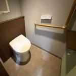お客様は、今回のリフォームにおいて、水まわりの設備交換を優先されたいとお考えです。トイレにつきましても、他の設備と同様に長く安心して快適にお使いいただけるよう、最新の設備への交換をご希望されています。 毎日の動作の安全性と快適性を高めるため、手すりの付け直しだけでなく、空間の居心地の良さを高めるデザイン性にも配慮した、質の高い快適でスタイリッシュなトイレ空間をご希望でした。