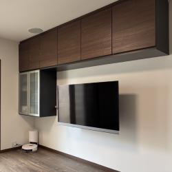 壁一面に造作収納を設けることで、散らかりやすいリビングがすっきり整いました。収納力とデザイン性を兼ね備え、快適に過ごせる空間へと生まれ変わりました。