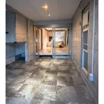 現在のサッシは撤去し、土間の奥に新たに設けました。内装は現状のコンクリートの壁を生かして床にビンテージ感のある素材をご提案させていただきました。サッシの構成については画像合成にてシミュレーションを行い、施主様とイメージの齟齬がないようにプランを進めました。