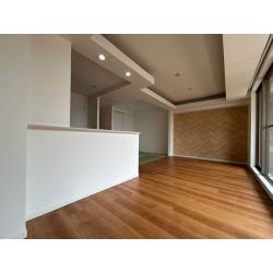 対面キッチンの吊り戸棚をなくし、内装も一新。 アクセントクロスがポイントの解放感あるリビングになっています。