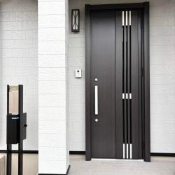 採風機能付き玄関ドアへ。照明器具も合わせて交換し、新しいおうちの顔に。