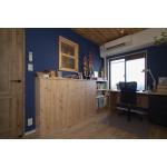 施主様の夢だった、自宅で集中できる書斎。単なる仕事部屋ではなく趣味も楽しめる“隠れ家”のような空間に仕上げました。青い壁で仕事モードに切り替え、木の天井を見上げるとほっと一息。オンとオフを両立できるお気に入りの場所です。