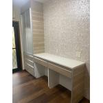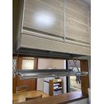 解決方法 1.家電置き場の下にゴミ箱が置けるスペースを確保 2.食器収納は引き違いの扉で、中に入っている物が見えにくいフロスト調にしました。災害の際、食器などが飛び出す心配がなく、安心してご使用いただけます。 3.シンクを小さくとり、調理場が広くなりました。 耐久性バツグンのアクリル人造大理石でお手入れも楽になりました。