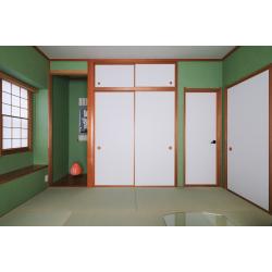 壁を爽やかなグリーンカラーに変えることで、空間が一気に明るくモダンな和室へと変身しました。収納扉や障子も新しくなり、部屋がスッキリ広々とした印象に。木の温かみを生かしたデザインと調和し、和の雰囲気を残しつつも、より快適で洗練された空間になりました。