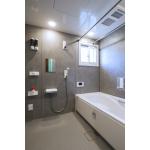 グレーの壁面とホワイトの浴槽を採用し、シックで明るい雰囲気のバスルームに。清潔感と機能性がアップし、毎日快適に使える空間へと生まれ変わりました。