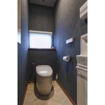 タンクレストイレとダークカラーのアクセントクロスを採用し、デザイン性と清潔感を両立させた、落ち着きのあるおしゃれなトイレ空間へと生まれ変わりました。