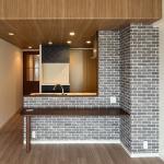 お客様のご要望にお応えし、キッチンにはLIXILのシステムキッチン「シエラS」を採用しました。扉色は落ち着きのあるブラックスタッコ、天板は清潔感のあるホワイトの人造大理石を選定。壁の一部にはレンガ模様のアクセントを施し、壁を取り払ったことでリビングまで視線が抜け、天井の板目模様とあわせて高級感のある空間が広がります。 また、日々の家事の負担を軽減するため食器洗い乾燥機を標準装備。背面には、扉色を統一したブラックスタッコのウォールキャビネットとハイフロアキャビネットを設置し、収納力とデザイン性の両立を図りました。リビングとのつながりを意識した開放的で使いやすいキッチン空間をご提案しています。