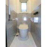 トイレ本体は、タンクレスタイプの「TOTOネオレストLS」をご提案。 内装は床と壁(腰高)にタカラスタンダードの「ホーロークリーントイレパネル」を選定し、お掃除のしやすさに配慮しました。 ホーローパネルの上質な質感に合わせて、天井と腰上の壁には新築用の#1000番クロスを採用し、トイレ室内全体の意匠性の向上も考慮した提案としております。