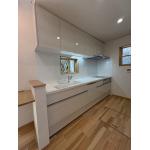 キッチンの位置移動をして、背面に収納スペースを設けました。また、食洗機導入など家事効率が上がるご提案をしました。