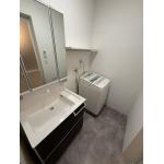 明るいイメージで、フルスライド収納を備えた洗面台で快適!
