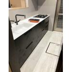 経年劣化にお困りでキッチンのリフォームをしました。 かっこよくお洒落にしたいという施主様のご要望に沿って、扉カラーやキッチンパネル、カウンターはシックでかっこいい様々な色味のグレーで統一しました。 対面カウンター部分はリビングが見渡せるように、壁をなくし開放感のある空間に。 高級感あふれるキッチンにかっこいい!と大変お喜びいただきました。