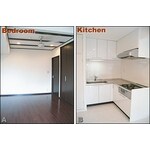 居間とDKを仕切る壁面を撤去し、排気ダクトが通っていた大きな梁を極力小さくすることで、LDKを広くし、シンプルなイメージを作りました。 また、床をフローリングではなく、大理石の床材にすることでモダン的な風合いを一層感じられるようになりました。 寝室はリビングとは違い、落ち着きのあるダークな色合いにし、天井にはアクセントを入れることでアジアン調なイメージを作りました。