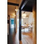 町家の間取りの特徴は活かし、廊下は土間の名残を感じさせるタイル風に。耐震に必要な柱や壁は残して垂直に引き上げ、壁には断熱材を入れました。