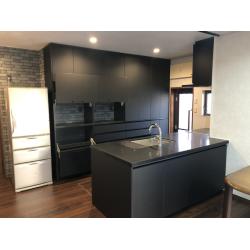 ・キッチンとカップボードは、セラミックが得意で安く、造作家具も得意な「ハンセム」というメーカー(韓国系)の商品を提案しました。 ・カップボードと靴の収納を一体型にして、同じ扉面材で統一しました。 ・床もしっかりしていましたので、フローリングの上張りを行いました。