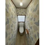 509.木目調のフロアとアクセントクロスがオシャレなトイレ。