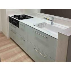 給排水・電気配線やり替え、キッチンパネル貼りを行っています。 最新のシステムキッチンで、使いやすくお手入れも簡単になりました!