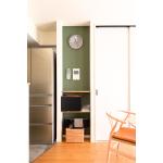造作をしたリビング収納横の余ったデッドスペースを活用し、ニッチ収納を設けました。 モデム類やインターホンなどを1か所にまとめ、使い勝手の良いスペースに。