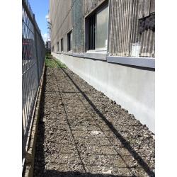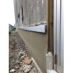 基礎ブロックの立上りとスレート壁に水切りの板金を取り付けて、ブロック基礎をモルタル上塗りで雨水の侵入を防ぎましょう。