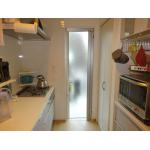 使いやすさ、お手入れのしやすさ、機能性を考慮し、リクシルのシエラをご提案いたしました。 大容量の食洗器やお掃除のいらない換気扇などを気に入っていただけました。 また、勝手口ドアは防犯面と断熱性を考慮しつつ、ガラス交換をご提案。 光をと入りれつつ、安全で視線が気にならないよう型ガラスをご採用いただきました。
