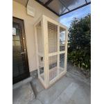 愛猫が留守番中でも退屈しないように外の景色が見られて外気を感じられるようなワイヤーメッシュで囲ったケージを家屋の外壁に沿わせて設置したいです。 既に壁に開けたキャットドアがあるので、そこから家の中とそのケージを行き来出来るような形態を想定している。