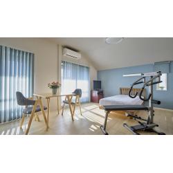 シニアライフを快適に過ごせるよう、家事がしやすい回遊動線を計画。浴室の拡張、キッチン・洗面・洗濯機の移設を行いました。リビングダイニングは、和室を洋室へ変更し、ワンフロアで生活できる間取りにしています。2階の寝室は、趣味の山登りのためトレーニングマシンも設置し、多目的に使える空間に。温熱性能、バリアフリー性能、防犯性能も向上させ、安心して長く住み続けられる住まいになりました。
