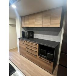 - 木の温もりとシャープな黒。レイヤーミックスが映えるキッチン