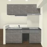 お客様の「開放的で使いやすい対面キッチンにしたい」というご要望にお応えし、吊戸棚下に折りたたみ式の仮置き棚(クイックパレット)が格納された、LIXILのシステムキッチン「リシェルSI(間口225cm)」をご提案しました。 プランにあたっては、レンジフードの位置を移動し、吊戸棚との高さを調整するとともに、調理中の油はねがリビング側に広がらないよう、レンジ前の壁はあえて残す計画としています。 ワークトップはシックな黒のラパートカーボン色を選定し、扉はやわらかく上品な印象のグレージュスタッコ色を組み合わせました。 加熱機器には、IHヒーター(無水両面焼きグリル)を採用し、使い勝手とお手入れのしやすさに配慮した、毎日の調理が快適なキッチンプランとしています。 背面にも、耐久性・デザイン性・機能性を兼ね備えた同シリーズのリシェル ウォールキャビネット(I型・間口153.3cm)を設置し、収納力も十分に確保しました。