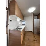 ・使い勝手の良いI型キッチンへ ・コンパクトでありながらも、キッチンと吊り戸棚で収納力をしっかり確保 ・L型からI型キッチンへ変更したことで、コンセントも使いやすい位置へ移設 ・壁、天井クロスも貼り換えて、気持ちの良い空間へ。