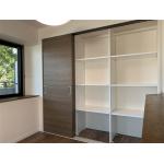 和室の間仕切り壁の位置をずらす事で、和室を6畳から4.5畳とし、リビングを広く確保しました。 畳は半帖畳へ新規交換し、従来の和室の雰囲気を残しながらも、すっきりとした印象に仕上げました。 あわせて、襖紙・障子紙も張り替え、経年によるくすみを解消し、明るく清潔感のある和室としています。 リビングはウォールナット柄の床材を用いた落ち着いた空間であるため、和室についても建具や壁のクロスを、リビングと調和する色合いでまとめました。 和室単体としての落ち着きは保ちつつ、LDKに隣接する一室として、空間全体に自然に馴染む和室となるよう配慮しています。