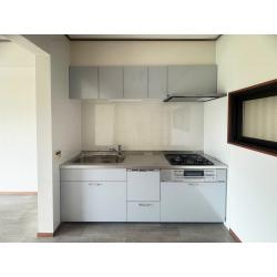 ご希望の食洗機を採用し、サイズを225cmに変更、スライド式のキャビネットにして収納力がアップしました。給湯器のリモコン位置を移設させて頂きました。