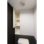 タンク一体型のトイレを採用し、配管や凹凸を抑えることで、空間が広くすっきりと感じられます。