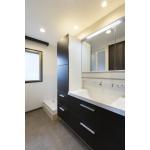 収納力の高いキャビネット一体型の洗面化粧台を採用し、洗面まわりがすっきりと整理しやすくなりました。