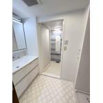 TA社のキッチン「トレーシア」を設置し、電動昇降吊戸棚で使いやすさが向上。ホーロー素材でお手入れも簡単になり、ブラックカラーが映えるスタイリッシュなキッチンに生まれ変わりました。 浴室には「ぴったりサイズ グランスパ」を採用。既存より広く設置でき、カリビアンブルーのアクセントパネルが清潔感と奥行きを演出します。手すりや可動式シャワーで安全性にも配慮しました。 洗面所には「エリーナ」を設置。ルームヒーターで冬場も快適に過ごせ、大容量収納とホーローキャビネットで日用品をすっきり整理できる、明るく上質な空間に仕上がりました。