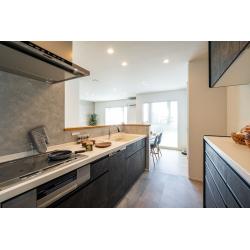 コンロの下には油跳ねがしないようパネルが欲しかったことと同時に、ダイニングから全部が見えないようになりました。