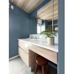 お家の雰囲気に合わせたパネル色が際立つ広々バスルーム