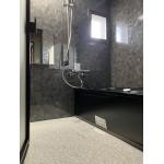 バスルームは、上質な黒でまとめたTOTO「サザナ」。やわらかな床の踏み心地と快適な入浴機能で、日々の疲れを癒すリラックス空間を演出します。