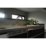 デザイン性と使いやすさを兼ね備えたパナソニック「ラクシーナ」のキッチンで、毎日の料理時間をより快適に。シックな色合いが空間全体を引き締め、上質な印象を演出します。