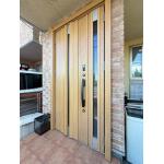 自然な木調のアルミ製玄関ドアに取り替え