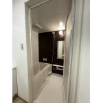 入口を段差を無くし、掃除しやすいように開き戸に変更した。 浴槽を冷めにくい保温付きの浴槽に変更しました。 また、水栓も節水型の混合栓にしました。